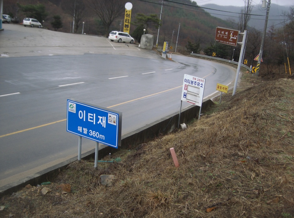 이티재 고갯마루에 주유소와 휴게소가 있다. 주유소 주인께 버스편을 물어보니 하루에 2번 밖에 없다고 한다. 택시를 불러달라고 부탁하고, 따뜻한 사무실에서 커피까지 대접 받았다. 역시 시골 인심이 좋다. 십오 분여 지나 택시가 도착했고, 질마재까지 이동했다.(택시요금 \13,000 / 증평 콜택시: 016-9722-8820)