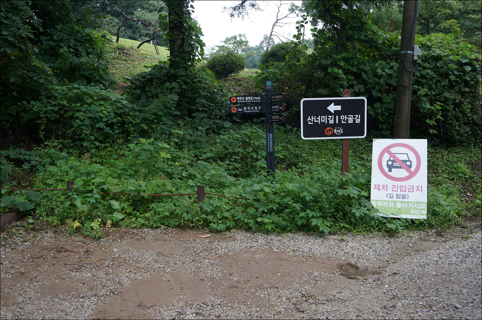 제1주차장을 지나서 원각사 갈림길까지 줄곧 고속도로와 나란히 간다. 도로를 따라가는 것이 조금은 지겹지만 달리 방법이 없다. 송추역으로 우회하는 방법이 있기는하다.
