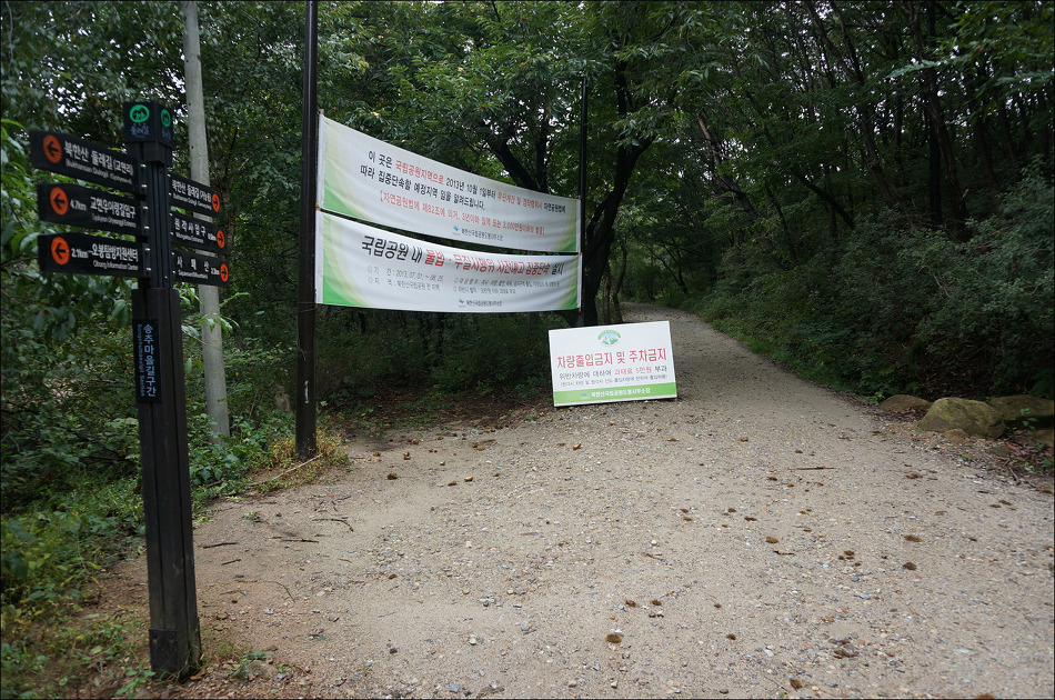 고속도로 터널을 지나면서 고속도로와는 이별, 원각사 비포장길로 진입하게 된다. 비포장 입구에서 국립공원직원이 차량 통행을 막고 있었다. 사람만 통행이 가능한 곳 ~