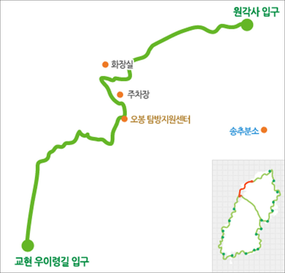 코스 : 13구간(송추마을길)....교현 우이령길 입구~오봉탐방지원센터~송추이주단지~송추 제1주차장~원각사 입구