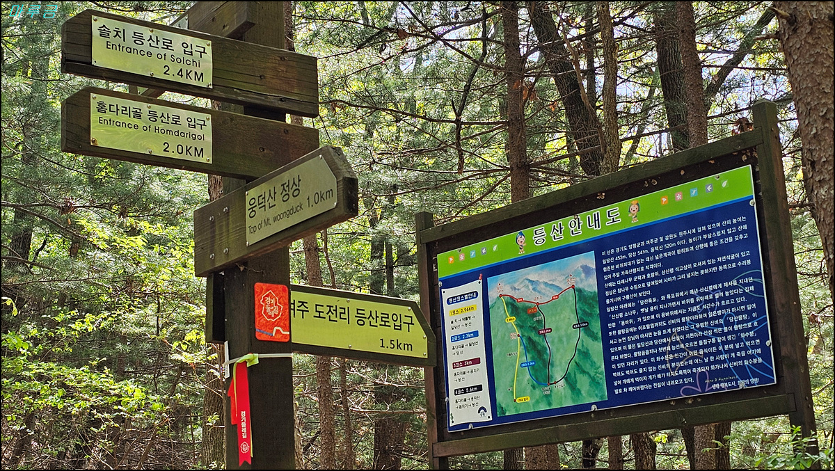 산행코스 : 홈다리골 주차장~임도~일당산(453.6m)~당산(545.6m)~곰지기재~웅덕산(533.3m)~갈번데기산(480m)~유턴~440 고지 분기점(등산로 아님 / 등산로 표지판이 있는 곳)~342.3봉~임도~홈다리골 주차장